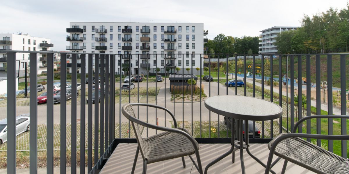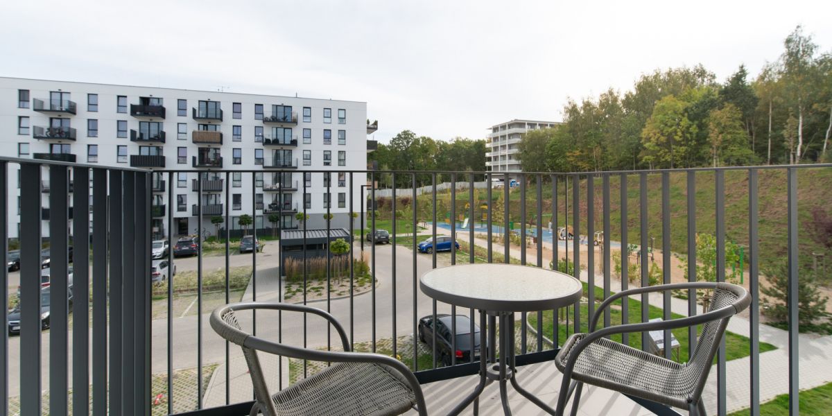 Przestronny balkon idealny na poranną kawę - stolik dla dwóch osób już jest,