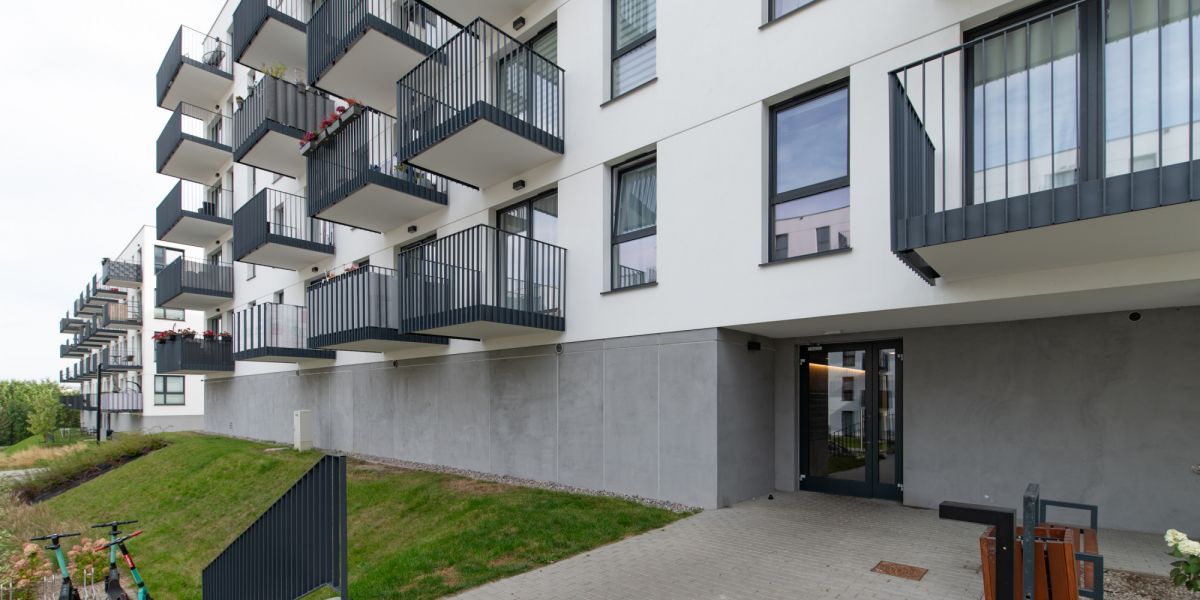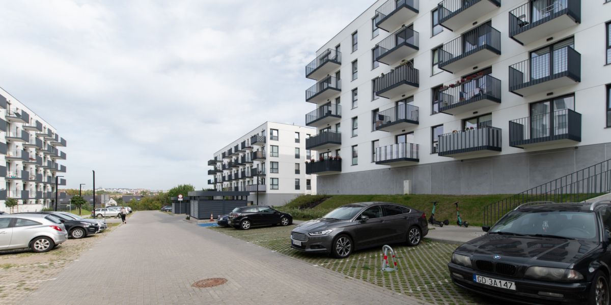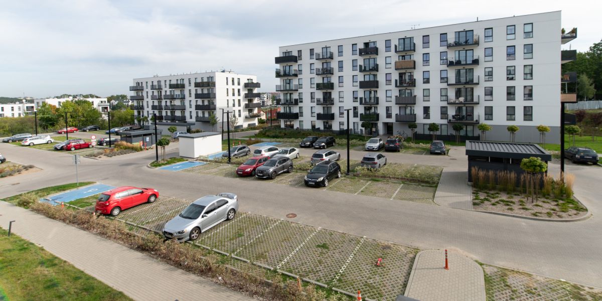 miejsce postojowe na zewnętrznej hali w cenie najmu, budynek z windą, osiedle otoczone zielenią i ścieżkami spacerowymi.
