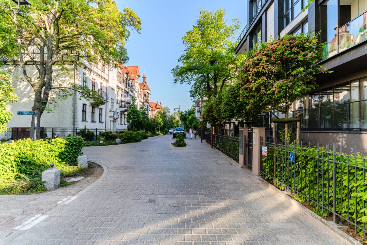 Ulica Parkowa, najbardziej prestiżowa lokalizacja nadmorskiego kurortu. Piękna zieleń miejska oraz nowa mała architektura. Wokół ujednolicona architektura odrestaurowanych, secesyjnych budynków. Spokój i elegancja.